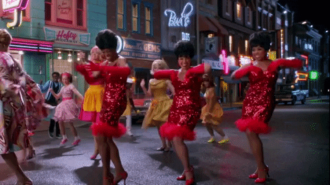 Energetic 1960s musical featuring bright costumes and big hairdos.